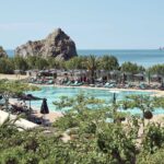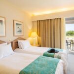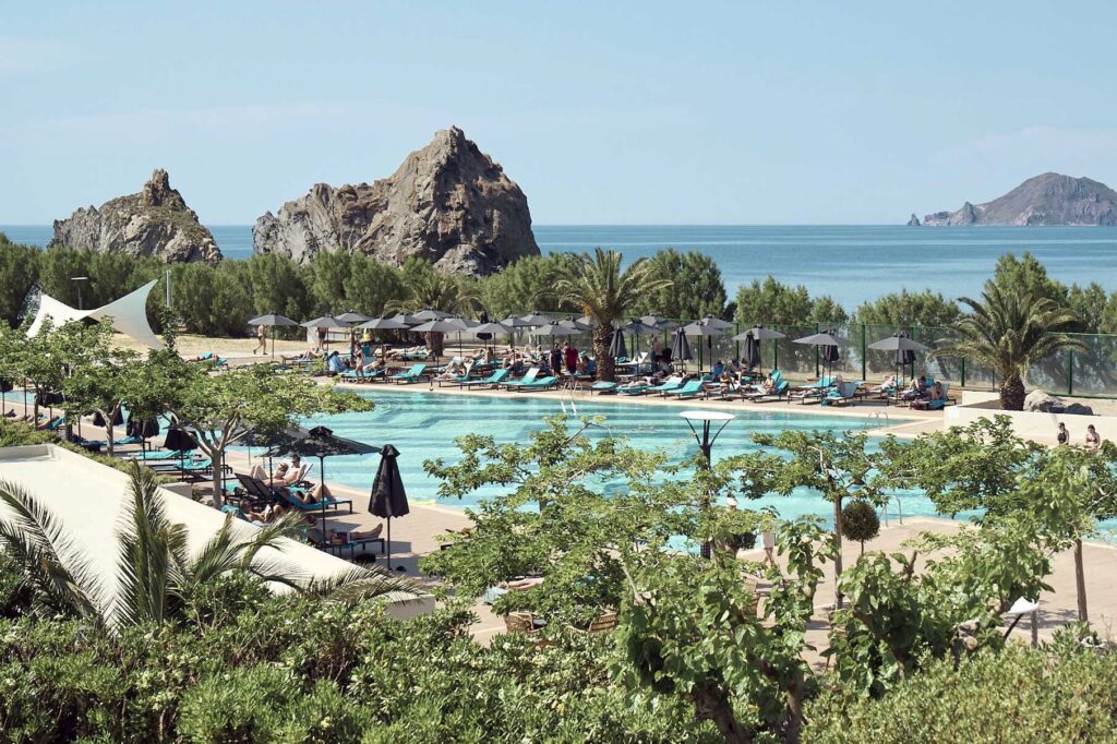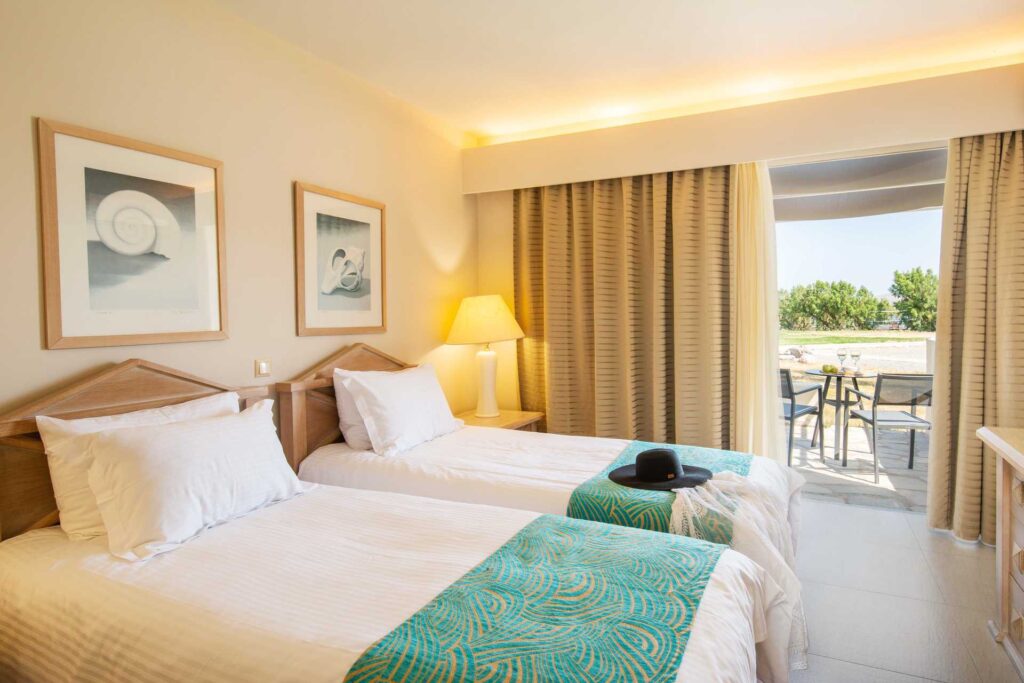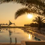 Hotellin puutarha-alueet ja palmut luovat viihtyisän keitaan, ja allasalue tarjoaa paikan rentoutua varjossa tai nauttia auringosta kirjan kanssa. Meri on vieressä, ja iltapäivisin valo laskeutuu kauniisti hotellin rantaan – täydellinen maisema päivän viimeisille rauhallisille venytyksille.