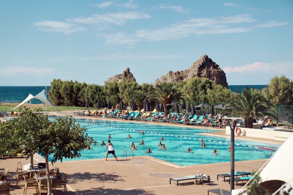 Porto Myrina – powered by Playitas on neljän tähden sporttihotelli, jossa liikkuminen ja palautuminen kulkevat luontevasti käsi kädessä. Hotellin ympäristö on rauhallinen ja merellinen – täydellinen paikka joogalle, venyttelyhetkille ja pehmeälle liikkeelle. Hyvin varusteltu kuntosali, ulkotilat, padel- ja tenniskentät sekä monipuoliset treenialueet tarjoavat lisämahdollisuuksia niille, jotka haluavat vaihtelua joogaviikon lomapäiviin. Voit lomasi aikana halutessasi osallistua Apollomatkojen järjestämiin ohjattuihin treeneihin.
